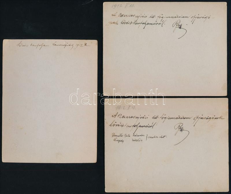 1912 A szamosújvári főgimnázium lövésztanfolyamáról, 3 db kartonra rag...