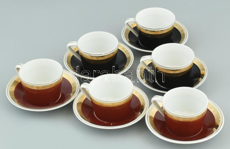 6 db Omnia reklámos retró mokkás porcelán csésze aljjal. Matricás, jelzett, kopásnyomokkal.