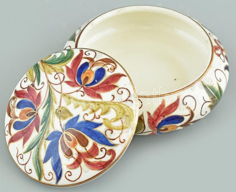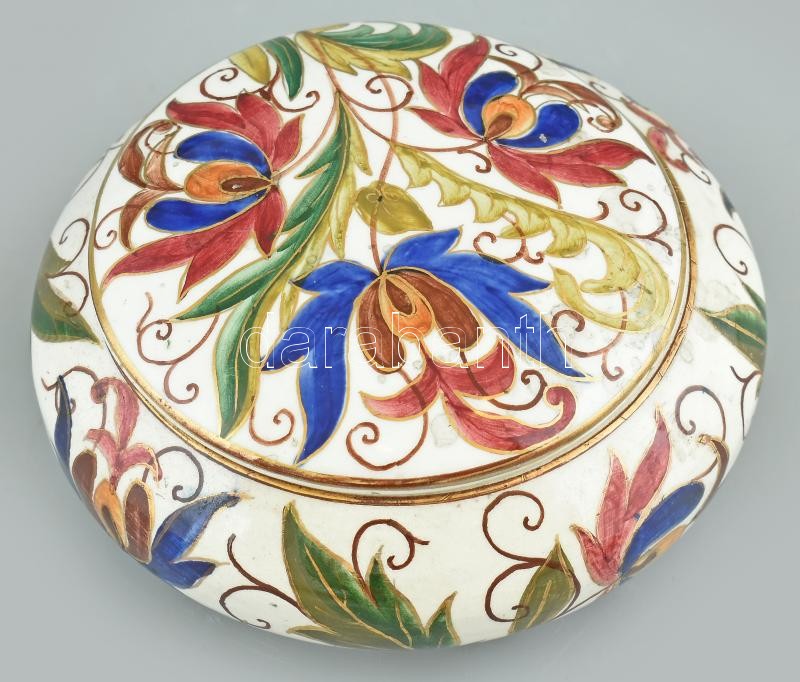 Városlődi kerámia bonbonniere, jelzett, kopásnyomokkal, d: 13cm