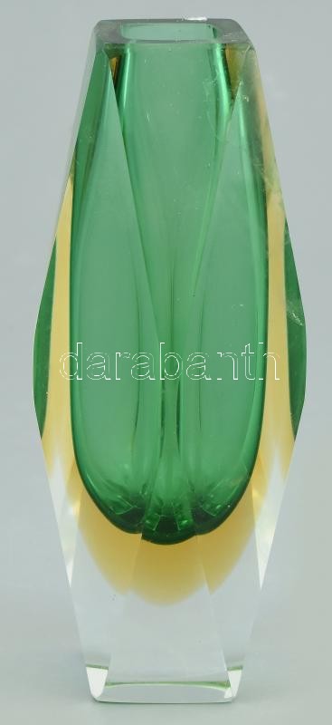 Muránói zöld Sommerso üvegváza, hibátlan, jelzés nélkül, m:16,5cm