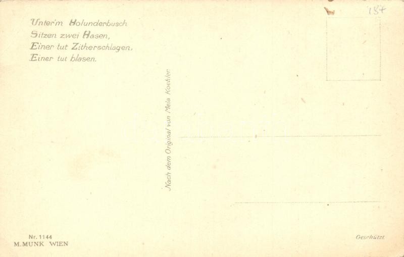 Rabbits playing music. M. Munk Wien Nr. 1144. litho s: Mela Koehler (EK)