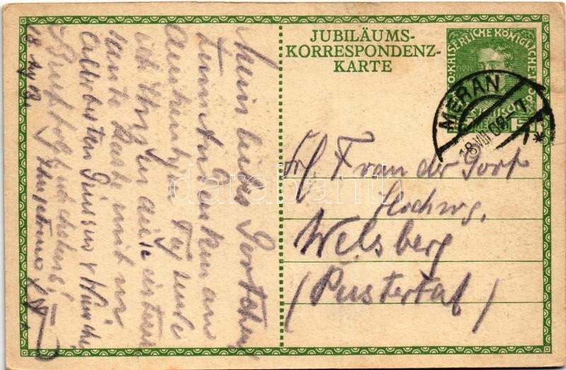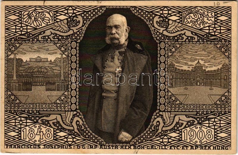 1848-1908 Franciscus Josephus I.D.G. Imp. Austr. Rex Boh.Gal.Ill. Etc. et. Ap. Rex Hung. / Ferenc József uralkodásának 60. évordulója, jubileumi díjjegyes lap / Franz Joseph's 60th anniversary of reign. Art Nouveau, Viribus Unitis. 5 Heller Ga. (EK)