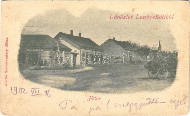 1902 Lengyeltóti, Fő tér, Schwarzenberg Miksa üzlete és saját kiadása ...