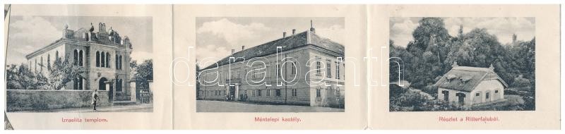 Description: 1912 Kisbér, Római katolikus templom, Báró Wenckheim Béla emlékszobra, Állami nagyvendéglő. Szecessziós iniciálés leporellolap 10 képpel: vasútállomás, izraelita templom (zsinagóga), lóversenytér, Méntelepi kastély, stb. Art Nouveau (b)