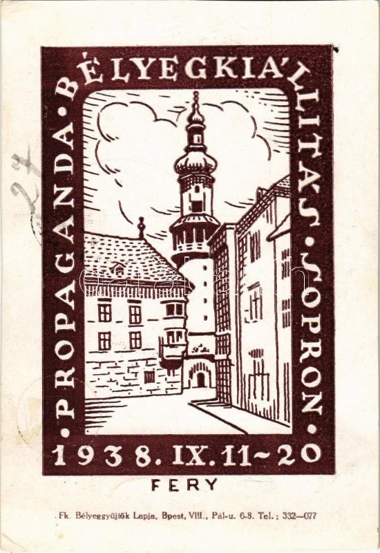 1938 Sopron, Propaganda Bélyegkiállítás Sopron 1938. IX. 11-20. s: Fer...