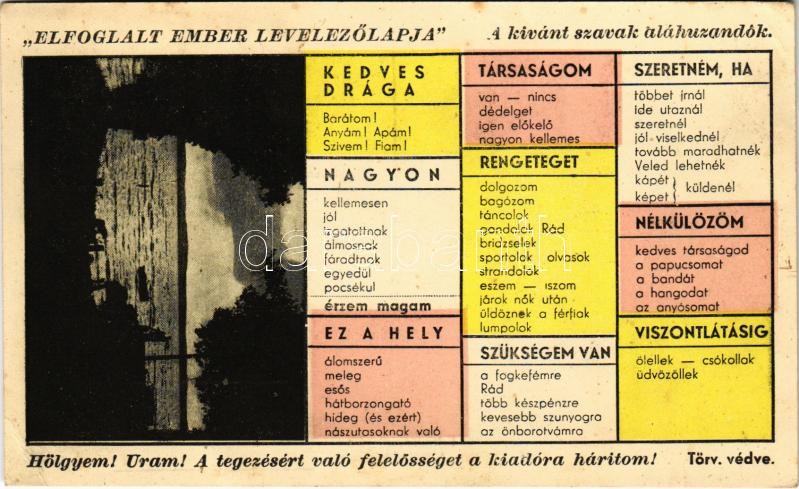 Balaton. Elfoglalt ember levelezőlapja, humor (EK)