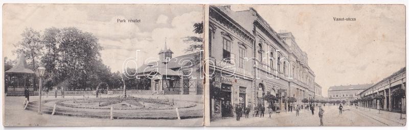 Békéscsaba, MÁV pályaudvar, vasútállomás, Rudolf gimnázium és templom, gyalogsági laktanya, park, Vasút utca, Tevan Adolf (Lepage Lajos utóda) könyvnyomda, Magyar Műbútorgyár rt., kerékpáros, Nádor szálloda és kávéház belső biliárd asztalokkal. Füzet 4 lappal (nem képeslap)