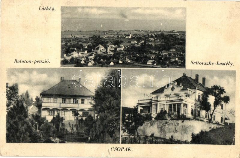 Csopak, látkép, Balaton penzió, szálloda és étterem, Scitovszky kastély. Kiadja Dömötör Vilmos (Rb)