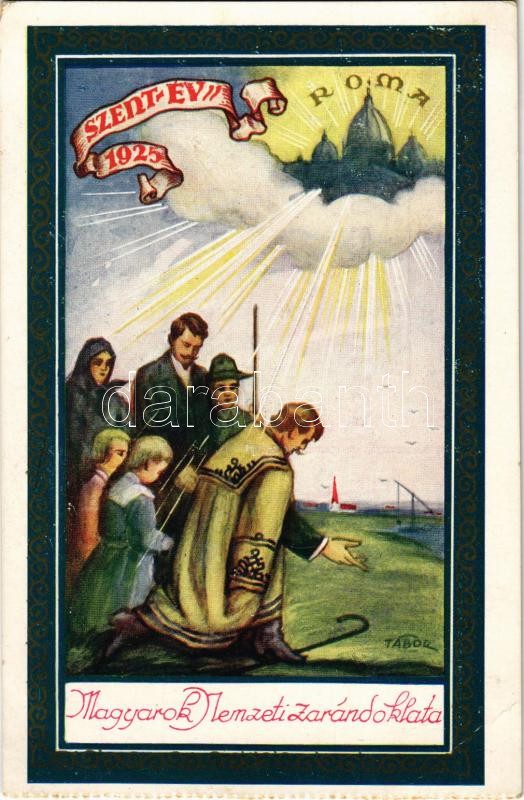 Description: 1925 Szent Év Magyarok Nemzeti zarándoklata Rómába. A Nemzeti Újság ingyenes római utazás nyereményjátéka / Hungarian National Pilgrimage to Rome. trip prize advertisement on the backside s: Tábor (EB)