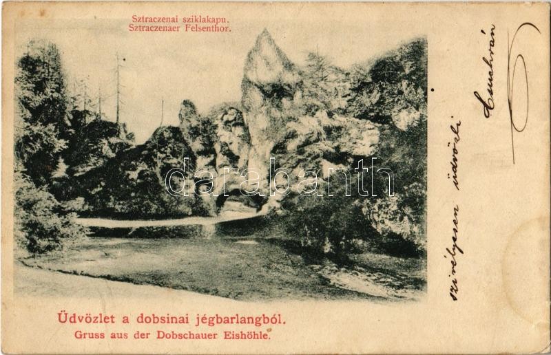 1910 Dobsina, Dobschau; Sztracenai sziklakapu / Felsenthor / rock gate...