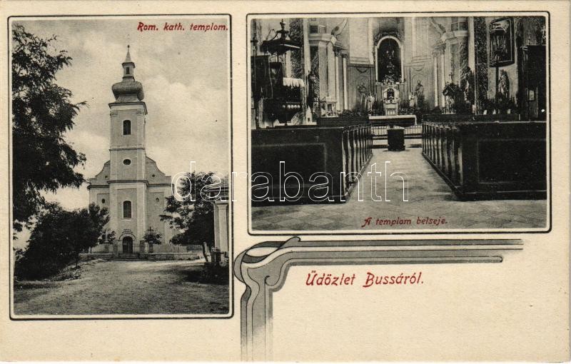 Bussa, Busince; Római katolikus templom, belső. darvai utóda Kondor Sándor kiadása / church and interior. Art Nouveau