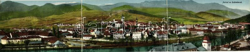 Rózsahegy, Ruzomberok; 3-részes kihajtható panorámalap, rajta vasútáll...