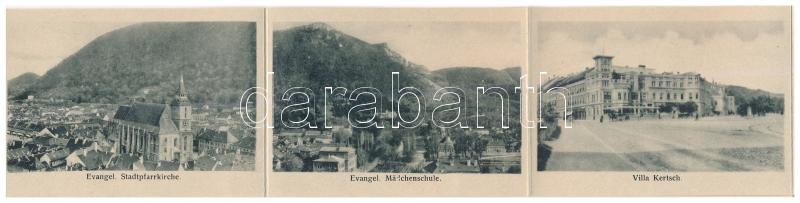Brassó, Kronstadt, Brasov; látkép. Keményhátú leporellólap / general view. Thick wooden leporellocard