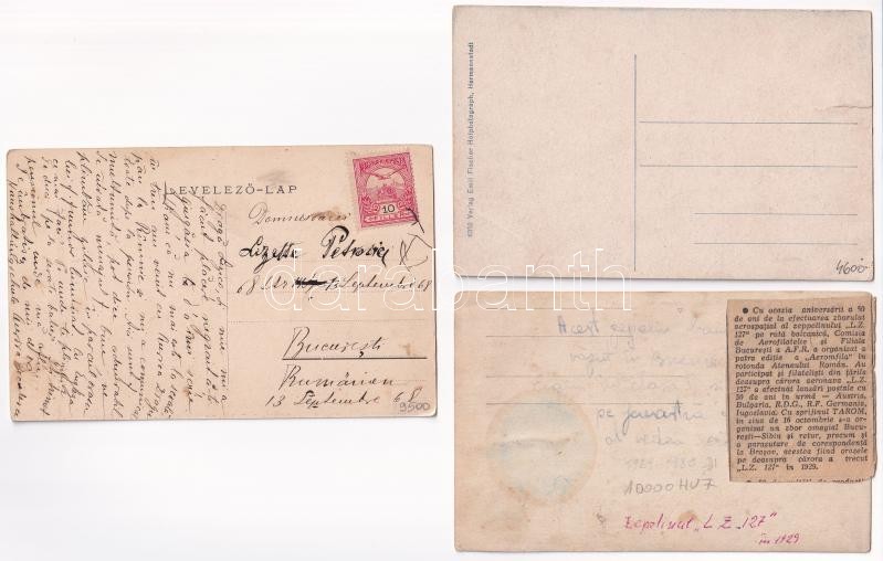 Nagyszeben, Hermannstadt, Sibiu; 3 db régi képeslap (léghajós) / 3 pre-1945 postcards (airship)