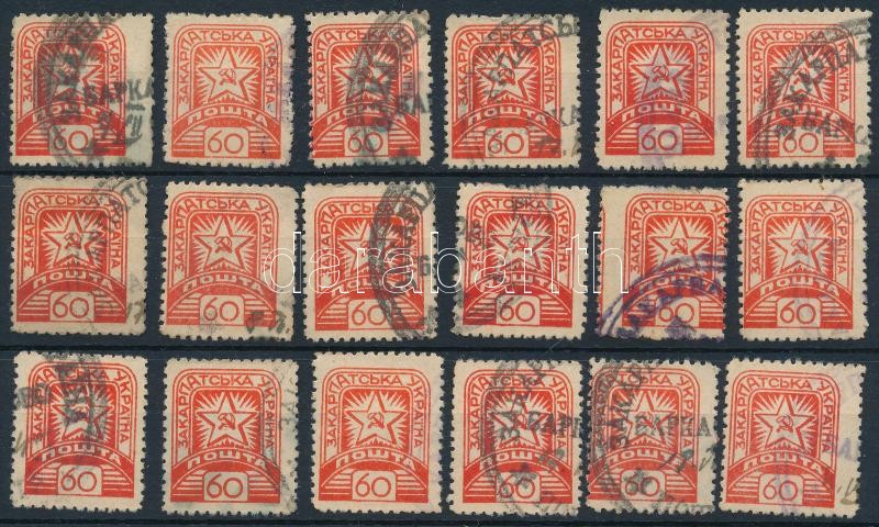 Kárpát Ukrajna 1945 Forgalmi 60f 18 db bélyeg: elfogazások, bélyegzések (Mi EUR 270.-)