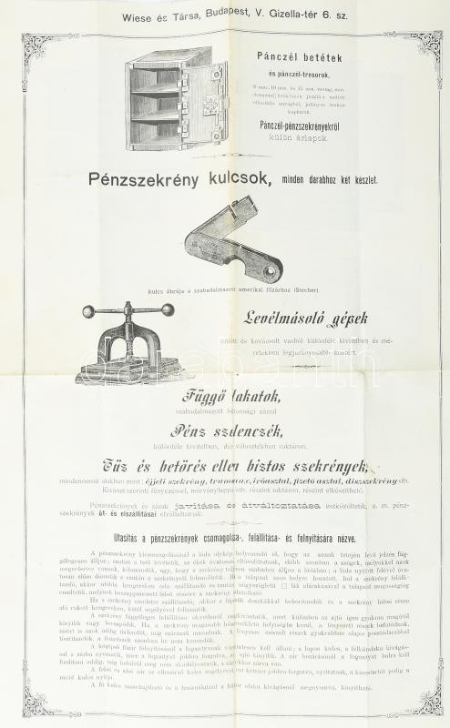 cca 1890 Wiese és Társa páncélszerkény-gyára képes árjegyzék 4 p 30x45 cm Hajtva / Safe catalogue with images
