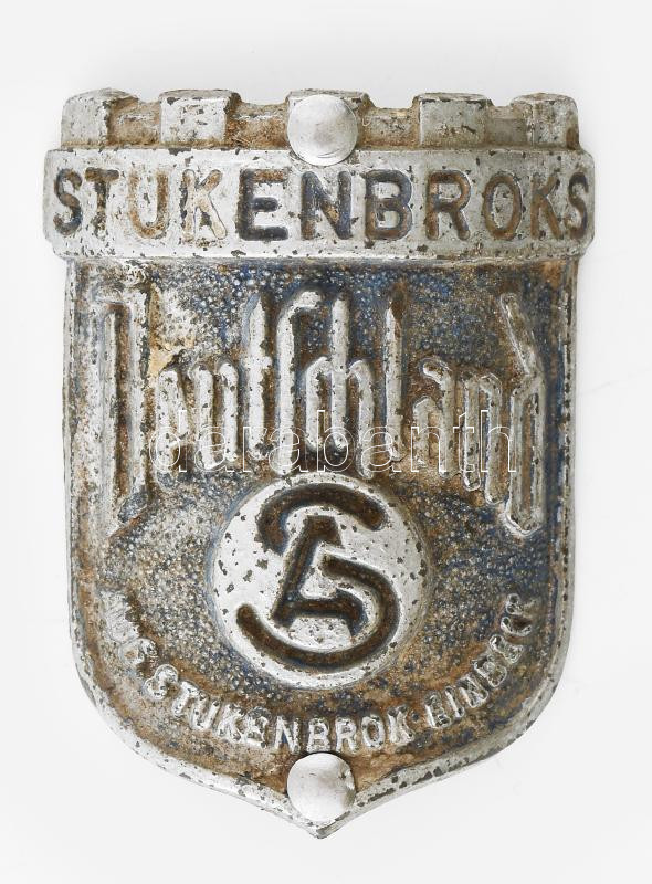 Stukenbroks "Deutschland" kerékpárjelvény, XIX. sz. vége-XX. sz. eleje. Gyártója a német August Stukenbrok Einbeck (ASTE) vállalat, melyet 1888-ban alapítottak Einbeckben, és 1932-ig létezett. A cég postai úton történő megrendelés alapján, közvetlenül a vásárlókhoz eljuttatva kínálta termékeit (kerékpárokat és hozzájuk való alkatrészeket); ezzel ez volt a második ilyen módon működő cég Németországban. Korának megfelelő állapotban, 48x35 mm / Stukenbroks "Deutschland" bicycle badge, late 19th-early 20th century, with slight wear, 48x35 mm