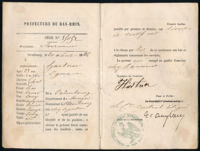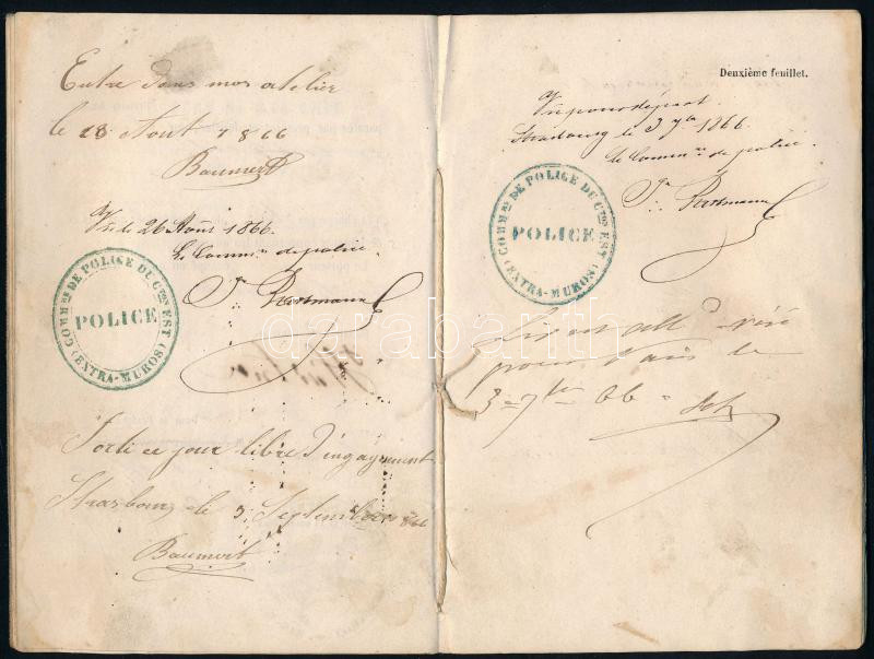 1866 Alsó-Rajnai munkakönyv a Magyarországra vándorolt Hartner Ignác k... https://www.darabanth.com/en/41-Major-auction/41.1/Art-and-other-collectibles/Documents~16819/1866-Also-Rajnai-munkakonyv-a-Magyarorszagra-vandorolt-Hartner-Ignac-kemenysepro-mester-res~II2995913