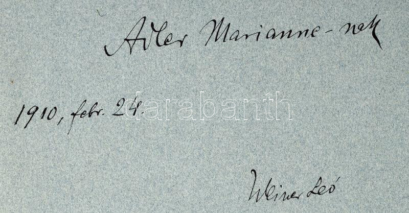 1910 Weiner Leó (1885-1960) zeneszerző saját kézzel írt kottája, egybekötve, a művész által Adler Marianne izraelita származású zongoratanárnő, Szendy Árpád (1863-1922) zongoraművész és - tanár, zeneszerző tanítványa részére DEDIKÁLT: "Adler Marianne-nek 1910. feb. 24. Weiner Leó."