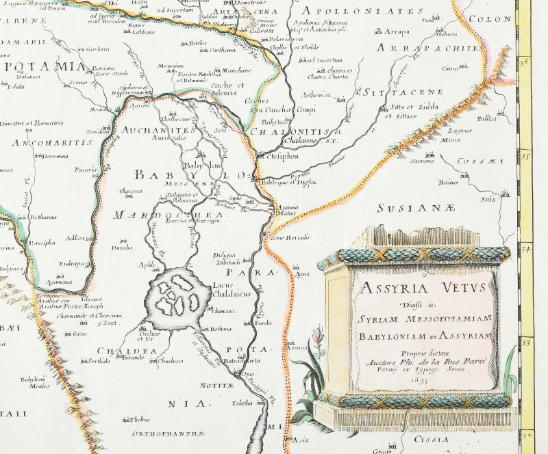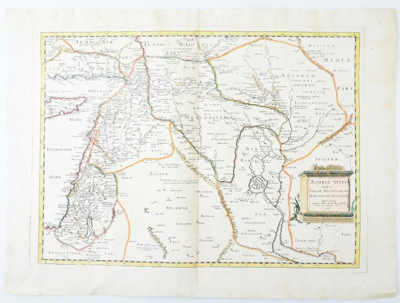 Description: Ph. De la Rue / Semin: Assyria Vetus Divisa in Syriam, Mesopotamiam, Babyloniam, & Assyriam Proprie Dictam.Auctore Ph. de la Rue. Paris 1695. Az Asszír birodalom térképe. Színezett rézmetszet. 520x380 mm / Map of the Assyrian Empire, colored engraving