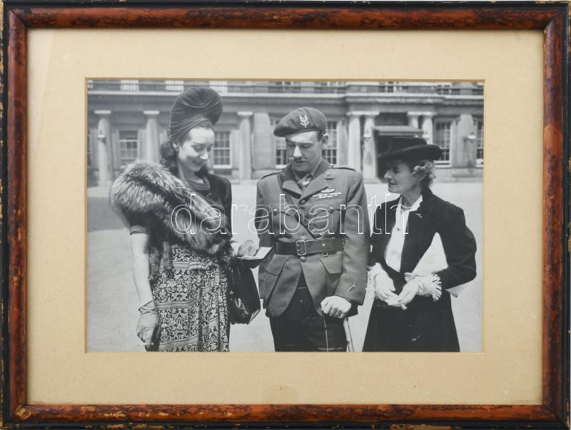 1941 British Army SAS különleges egység kommandósa hölgytársaságban, fotó, üvegezett keretben, 13×19 cm
