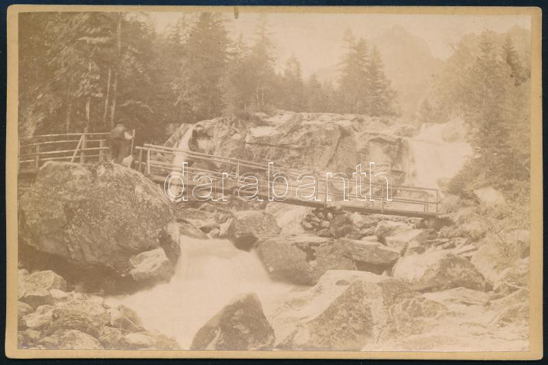 cca 1890 A Nagytarpatak felső vízesése, keményhátú fotó, Divald Károly...