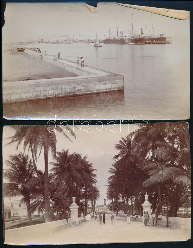 Description: cca 1902 Mittermayer (Markóczi) Alajos soproni fotós mexikói fotói, (Gyula nevű személy jegyzeteivel.) Az egyik fotón ahogy S.M.S Szigetvár kiköt Veracruz kikötőében, közte sok sérült, 63 db, 12×20 cm