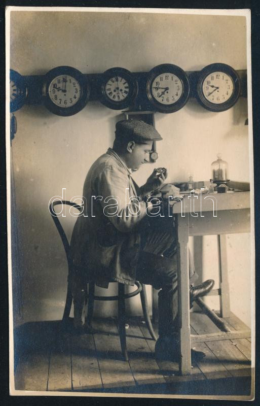 cca 1930 Órásmester munka közben, fotólap, 13x8 cm