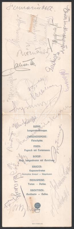 1908 Arad, a novarai csata emlékére rendezett ünnepi ebéd menüje, aláírásokkal