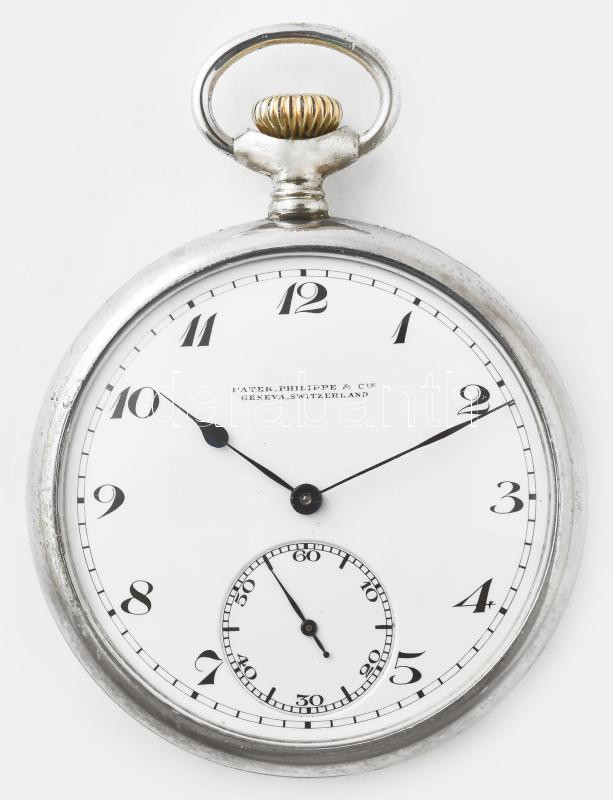 Patek Philippe zsebóra, XX. sz. eleje. Másodpercmutatós, szép számlappal, fém tokkal. Működő, jó állapotban, szerkezetszám 149692 d: 50 mm A Patek Philippe órák a művészet és a mérnöki precizitás keverékét képviselik. Ez nem csak egy időmérő eszköz; a luxus és a kézműves órakészítés szimbóluma, amely kiállta az idő próbáját. / Patek Philippe pocket watch with metal case, in working, good condition. This Patek Philippe pocket watch represents a blend of horological artistry and engineering precision. It's not just a timekeeping device; it's a symbol of luxury and craftsmanship that has stood the test of time.