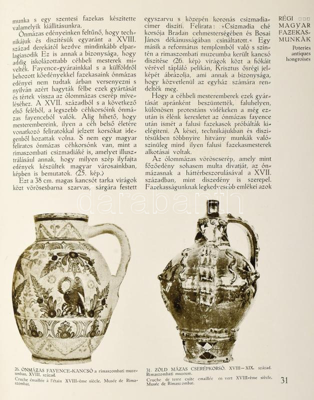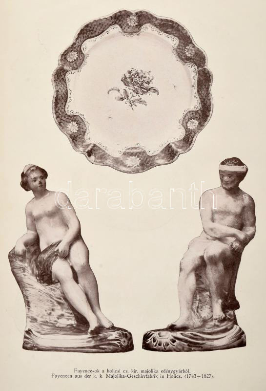 Divald Károly - Siklóssy László - Rédey Miklós - Török Kálmán: A magyar kerámika története. Holics, Tata, Stomfa. Bp., 1917, Szent-György-Czéh, 1 sztl. lev. + II+76 p. + 1 sztl. lev. + XVI t. Gazdag szövegközi és egészoldalas képanyaggal illusztrálva. Átkötött félvászon-kötésben, jó állapotban, az eredeti elülső papírborító bekötve.