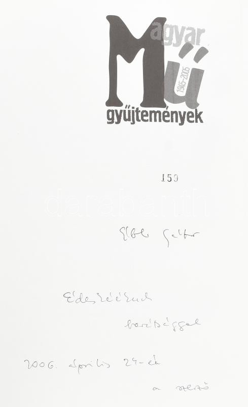 Ébli Gábor: Magyar műgyűjtemények 1945-2005. A szerző, Ébli Gábor (1970-) esztéta, művészeti író, kurátor által Haraszty István "Édeskének" (1934-2022), Kossuth-díjas szobrász, festőművész részére DEDIKÁLT! Bp., 2006, Enciklopédia. 159. sorszámmal. Kiadói kartonált papírkötés, jó állapotban. Néhány lapon Haraszty István neve filctollal jelölve!