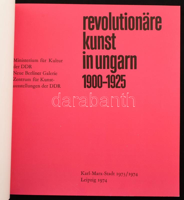 Revolutionäre Kunst in Ungarn 1900-1925. [Magyar forradalmi művészet 1900-1925. Kiállítási katalógus]. Szerk.: Roswitha Reichert, Helga Weißgärber. Leipzig, Karl-Marx-Stadt, 1974, Ministerium für Kultur der DDR - Neue Berliner Galerie - Zentrum für Kunstausstellungen der DDR. Gazdag fekete-fehér képanyaggal, közte Berény Róbert, Bortnyik Sándor, Czigány Dezső, Derkovits Gyula, Ferenczy Noémi, Kmetty János és mások műveinek reprodukcióival. Német nyelven. Kiadói papírkötés.