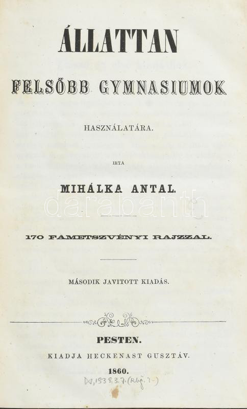 https://www.darabanth.com/en/41-Major-auction/41.1/Books/Books-Gastronomy-and-Gardening~16821/Mihalka-Antal-Allattan-Felsobb-gymnasiumok-hasznalatara-Pest-1860-Heckenast-Gusztav-248~II3009004
