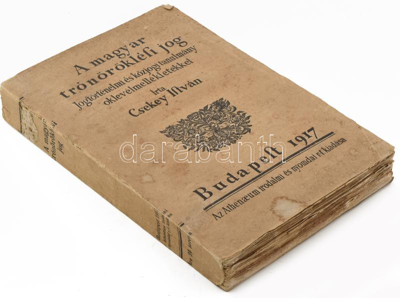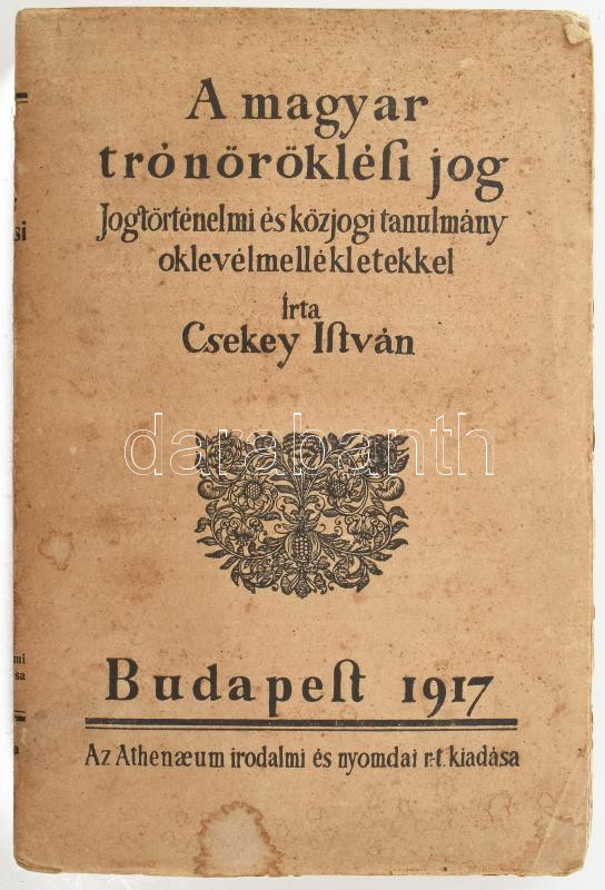 Csekey István: A magyar trónöröklési jog. Jogtörténelmi és közjogi tan... https://www.darabanth.com/en/41-Major-auction/41.1/Books/Books-Law~16798/Csekey-Istvan-A-magyar-tronoroklesi-jog-Jogtortenelmi-es-kozjogi-tanulmany-oklevelmellC3~II2979767