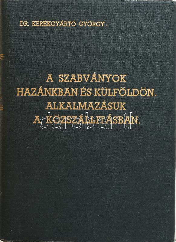 Description: Kerékgyártó György: A szabványok hazánkban és külföldön. Alkalmazásuk a közszállításban Bp., 1937. Monopol. 520 p . + 1 kih tábl. Egészvászon kötésben, vászon! védőborítóval, szép állapotban, vászonborítású tékában. Ritka közlekedés témájú munka