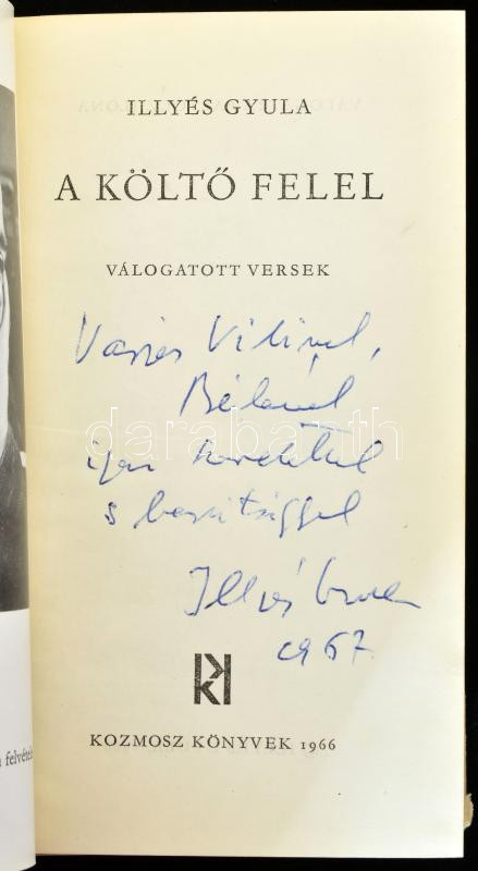 (Bp.) 1966. Kozmosz. 1... https://www.darabanth.com/en/41-Major-auction/41.1/Books/Books-Other-rarities~16812/llyes-Gyula-A-kolto-felel-Valogatott-versek-Bp-1966-Kozmosz-1-t-Illyes-Gy-252-p-2~II3002483