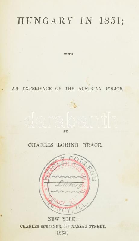 Brace, Charles Loring: Hungary in 1851; with an experience of the Austrian Police.