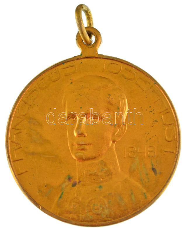 Osztrák-Magyar Monarchia 1908. "Ferenc József uralkodásának 60. évfordulója" aranyozott bronz jubileumi emlékérem szalag nélkül. "FRANCISCUS IOSEPHUS I. 1848. - FRANCISCUS IOSEPHUS I. 1908." (29mm) T:XF / Austro-Hungarian Monarchy 1908. "60th Anniversary of Franz Joseph's Reign" gilt bronze jubilee commemorative medallion without ribbon (29mm) C:XF edge error