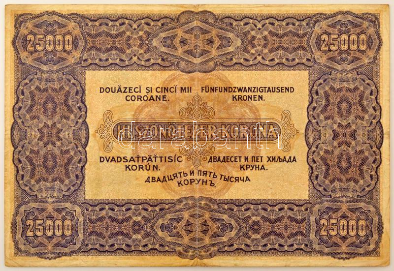 1922. 25.000K "Orell Füssli Zürich" "D27 026980" T... https://www.darabanth.com/en/41-Major-auction/41.1/Numismatics/Hungarian-Banknotes~16829/1922-25000K-Orell-Fussli-Zurich-D27-026980-TF-helyenkent-kopott-de-osszessegeben-eros~II2992834