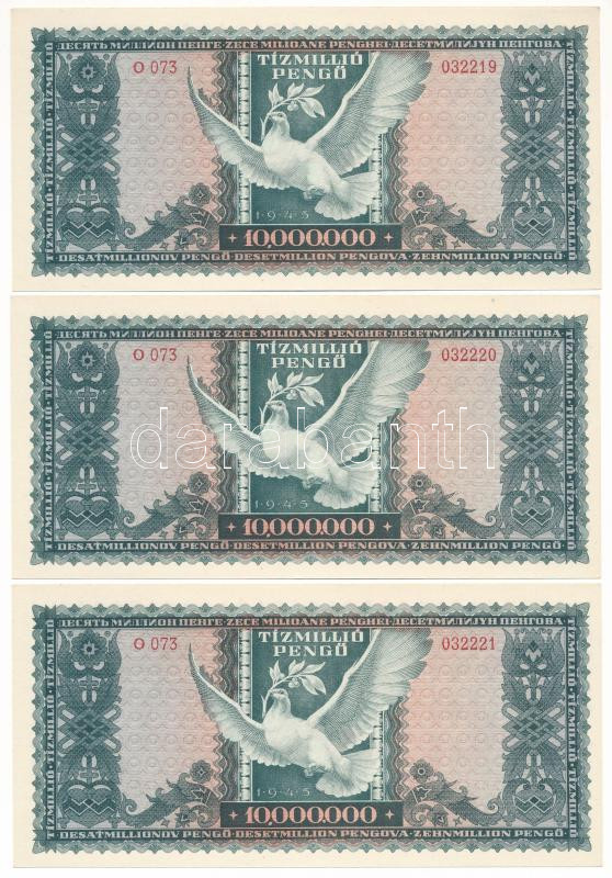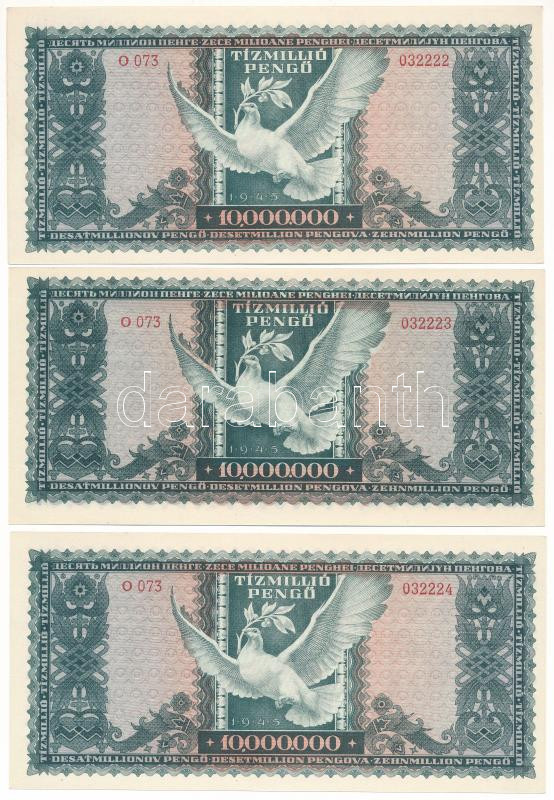 1945. 10.000.000P (10x) sorszámkövetők "O 073 032216 - O 073 032225" T:AU / Hungary 1945. 10.000.000 Pengő (10x) consecutive serials "O 073 032216 - O 073 032225" C:AU
