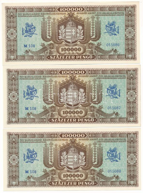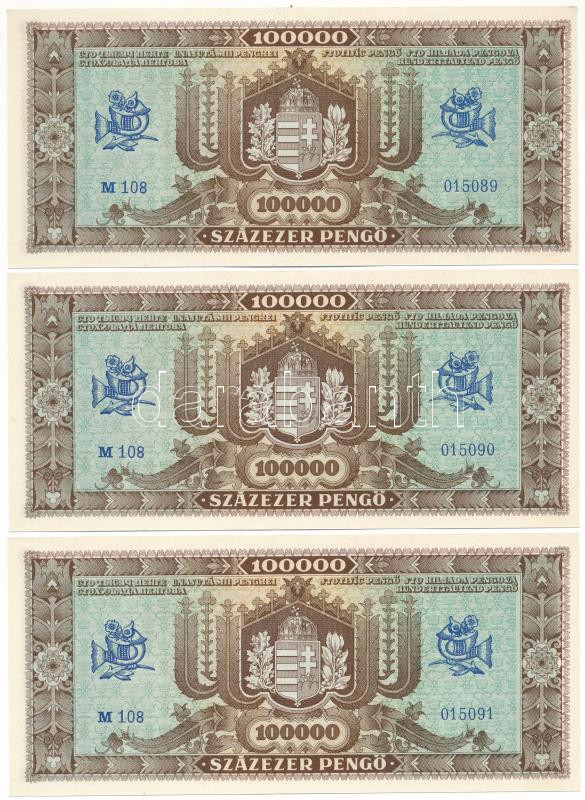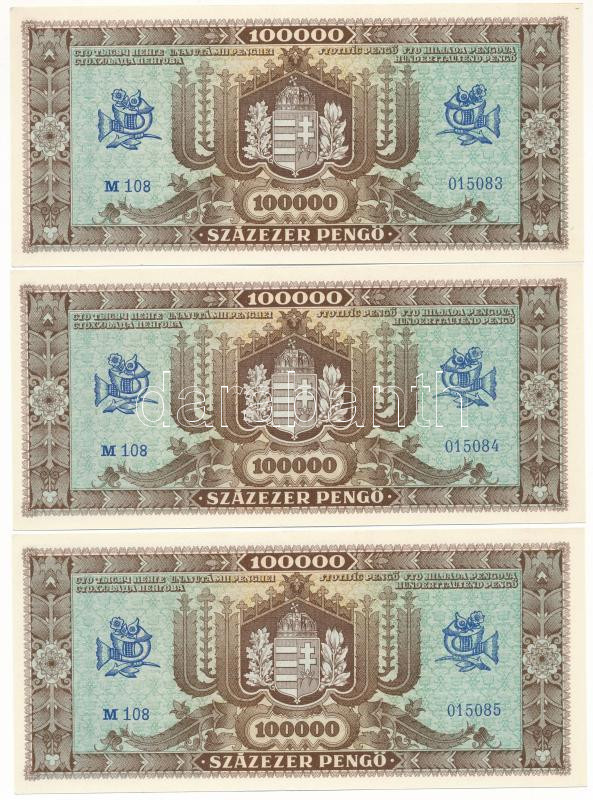 1945. 100.000P (10x) sorszámkövetők "M 108 015083 - M 108 01592&q...