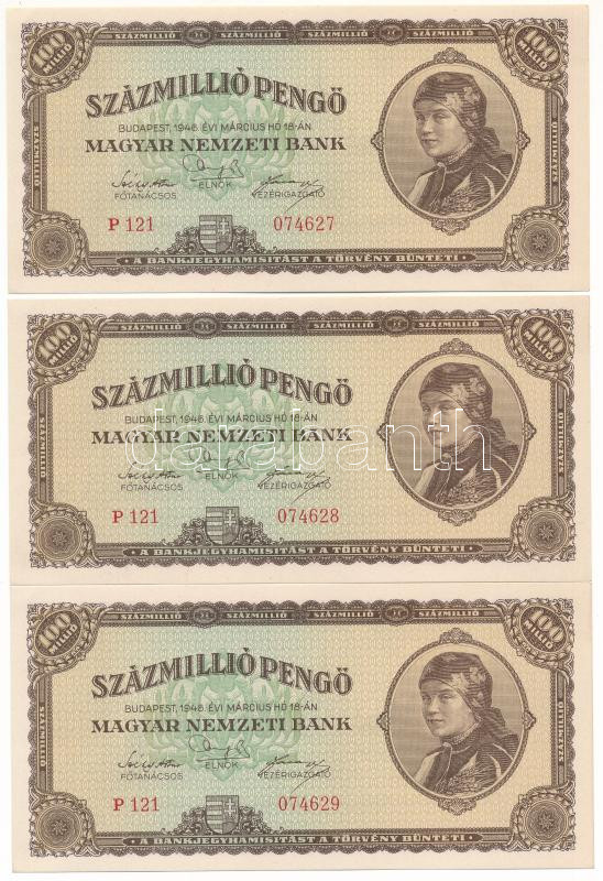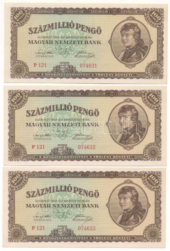 https://www.darabanth.com/en/41-Major-auction/41.1/Numismatics/Hungarian-Banknotes~16829/1946-100000000P-9x-harmasaval-sorszamkovetok-TAU-Hungary-1946-100000000-Pengo-9x-~II3001227
