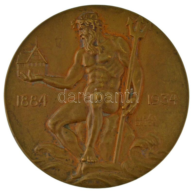 Berán Lajos (1882-1943) 1934. "A Neptun Budapesti Evezős Egylet - 50 év emlékére" kétoldalas bronz sport emlékérem, peremén "BERÁN N. BPEST" gyártói jelzéssel (109,49g/60mm) T:AU,XF patina / Hungary 1934. "A Neptun Budapesti Evezős Egylet - 50 év emlékére" double-sided bronze sports commemorative medallion, with "BERÁN N. BPEST" maker's mark on edge. Sign.: Lajos Berán (109,49g/60mm) C:AU,XF HPII 248.
