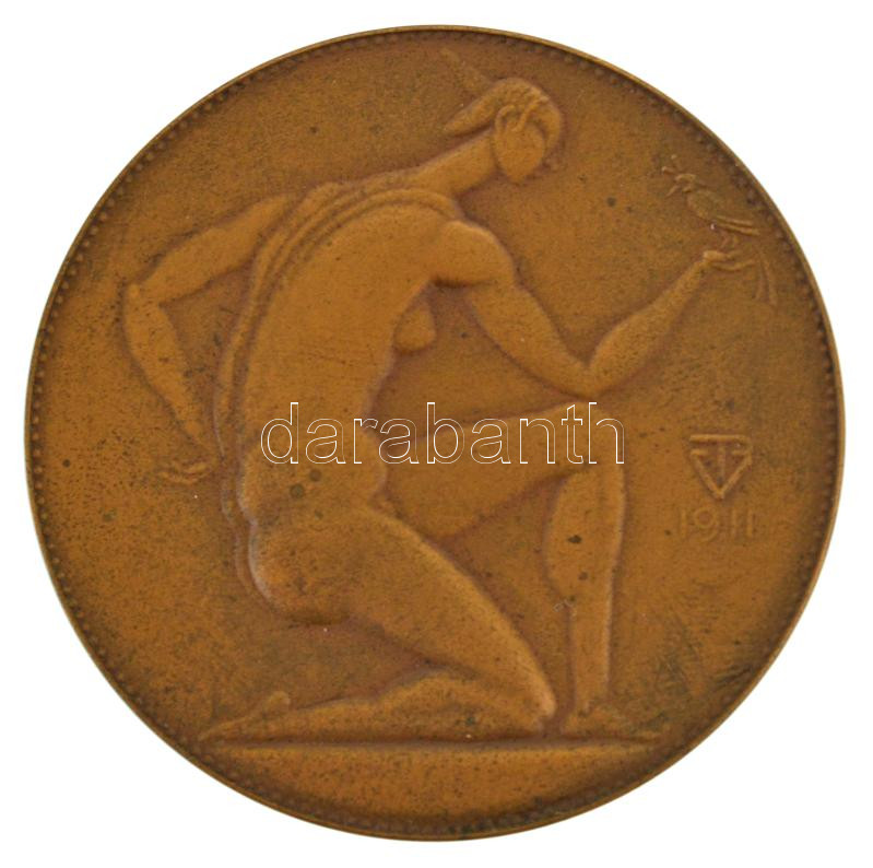 Fémes Beck Vilmos (1885-1918) 1911. "Női akt madárral" bronz plakett, Éremkedvelők Egyesületének tagsági érme, peremén "ÉKE 1911", sorszámozott, "80"-as sorszámmal (53mm) T:AU / Hungary 1911. "Női akt madárral" bronze plaque, membership medal of the Association of Medal Enthusiasts, with "ÉKE 1911" and serial number "80" on edge Sign: Vilmos Beck Fémes (53mm) C:AU