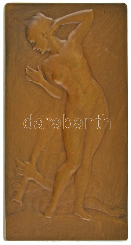 Telcs Ede (1872-1948) 1910. "Boszorkány" mesés motívumokat ábrázoló egyoldalas bronz plakett, Éremkedvelők Egyesületének tagsági érme, peremén sorszámozott, "75"-ös sorszámmal (43,5x81mm) T:AU / Hungary 1910. "Witch" one-sided bronze plaque depicting fairytale motiffs, membership medal of the Association of Medal Enthusiasts, serial number on edge "75". Sign: Ede Telcs (1872-1948) C:AU