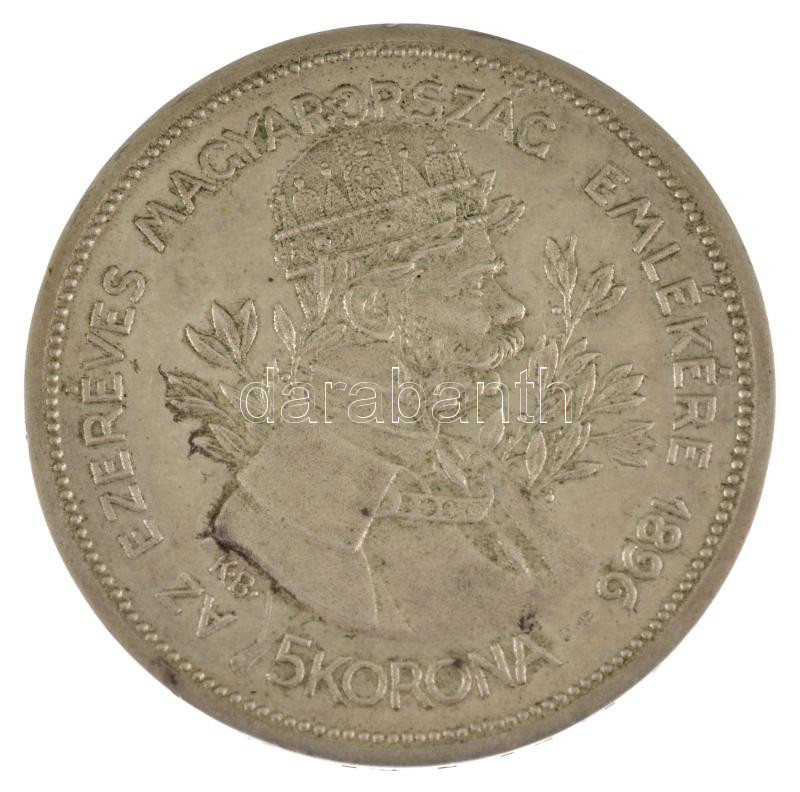 1896KB 5K Ag "Az ezeréves Magyarország emlékére" 1967-ben készült Artex-veret U.P. jelzéssel, dísztokban (24,21g/36mm) T:AU (PP) kis ph. / Hungary 1896KB 5 Korona Ag "1000th Anniversary of the Hungarian State" Artex restrike made in 1967 with U.P. mark, in case (24,21g/36mm) C:AU (PP) Adamo KE12