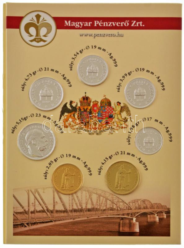 2016. "Mesterdarabok ezüstből 1892" 1892. 1f-20K Ag (7xklf) forgalmi sor utánverete eredeti díszcsomagolásban T:UNC / Hungary 2016. "Silver master pieces 1892" 1892. 1 Fillér - 20 Korona Ag (7xdiff) restrike coin set in original case C:UNC