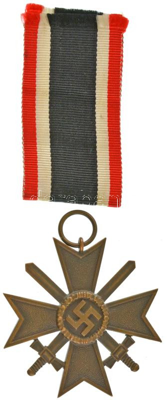 German Third Reich 1939. "War Merit Cross 2nd Class with Swords (Kriegsverdienstkreuz 2. Klasse mit Schwertern)" bronze decoration with ribbon, without maker's mark C:AU
