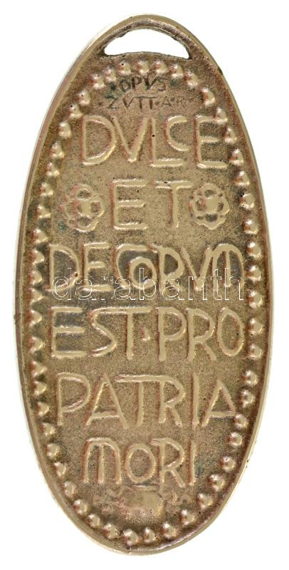Description: Zutt Richárd (1887-1938) 1914. "DVLCE ET DECORVM EST PRO PATRIA MORI" ezüstözött bronz emlékérem (49x24mm) T:AU / Hungary 1914. "DVLCE ET DECORVM EST PRO PATRIA MORI" silver plated bronze commemorative medallion. Sign.: Richard Zutt (49x24mm) C:AU HP 6813.